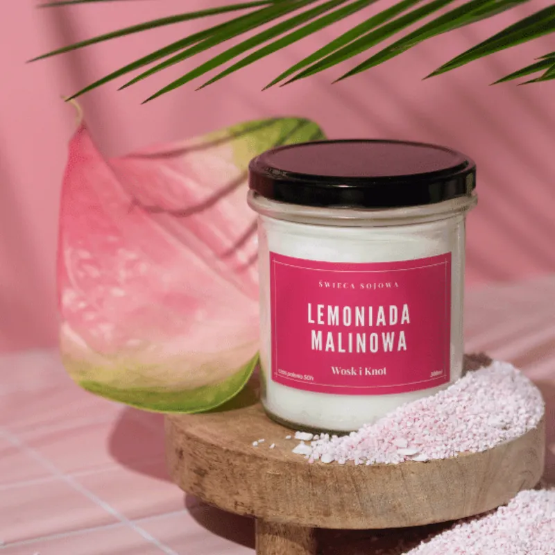 Świeczka sojowa Lemoniada Malinowa - Wosk i Knot
